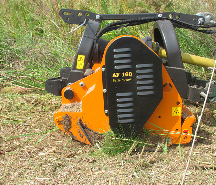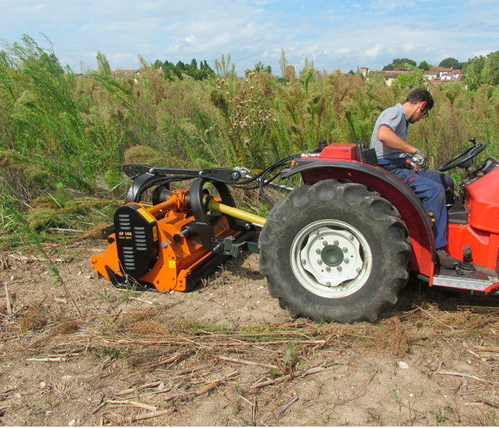 Para tractores desde 35 hasta 80 CV de potencia. Apta para la trituración de hierba y material leñoso de hasta 5-6 cm Ø en viñedos y explotaciones hortofrutícolas.