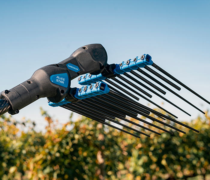 El cosechador eléctrico de aceitunas ALICE STAR ha sido diseñado para el uso profesional en los olivares. Su rendimiento lo hace ideal para sesiones intensivas de recolección con cualquier tipo de olivo. Es especialmente indicado para la cosecha de aceitunas pequeñas y resistentes al desprendimiento de las ramas.