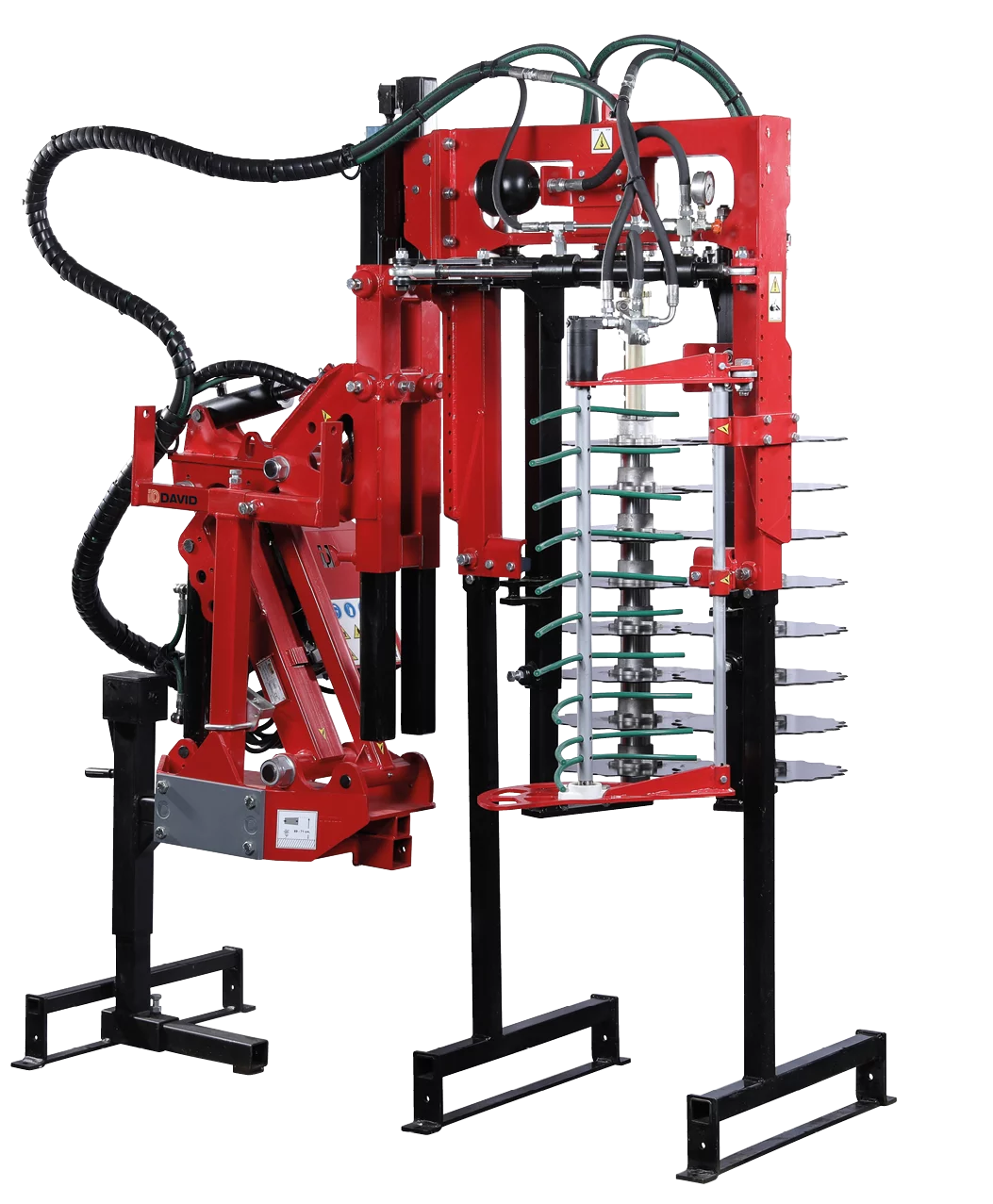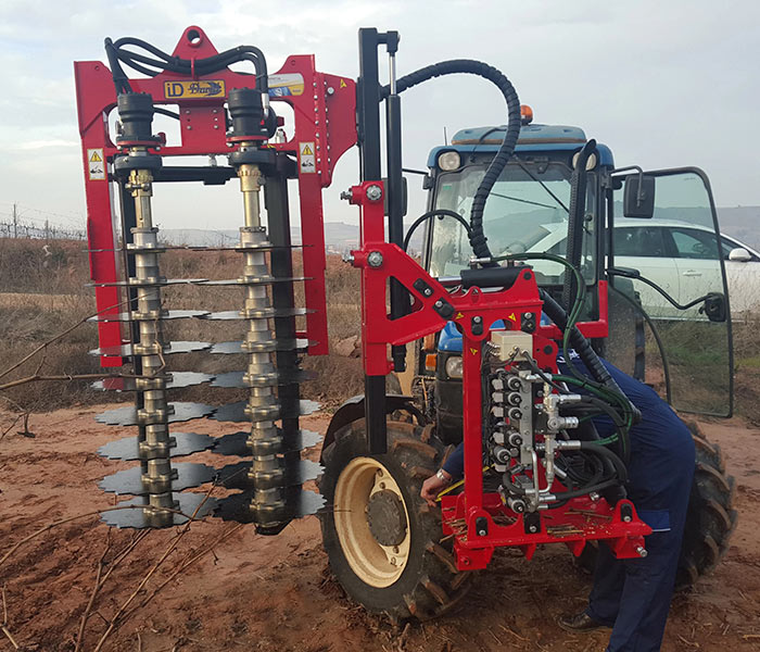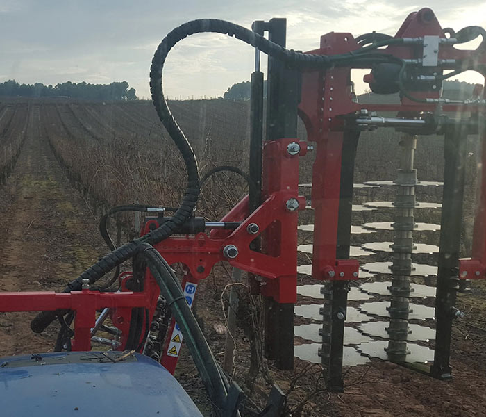 Prepodadora panorámica para viñas en espaldera. Ideadas para el troceado de los sarmientos y limpieza de los alambres. Apertura manual y cierre automático del cabezal de corte mediante pulsador en el joystick.