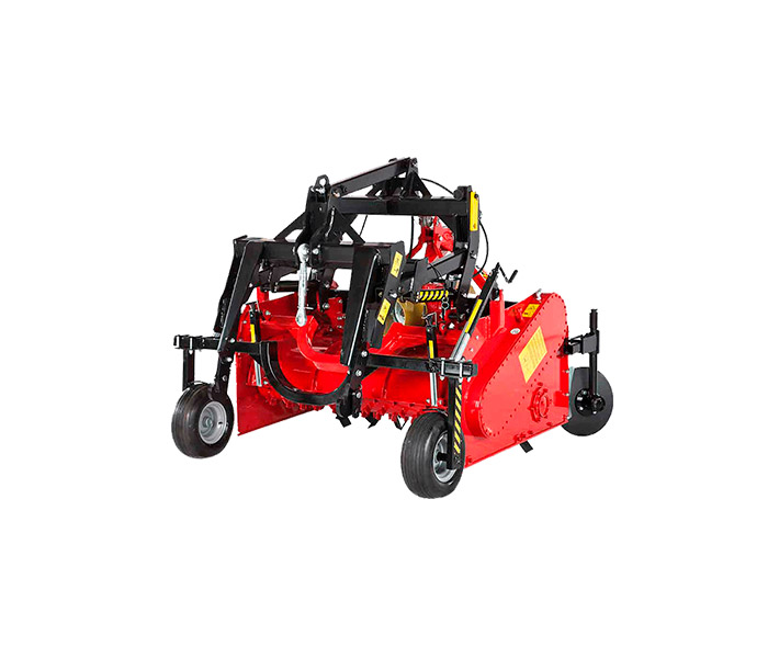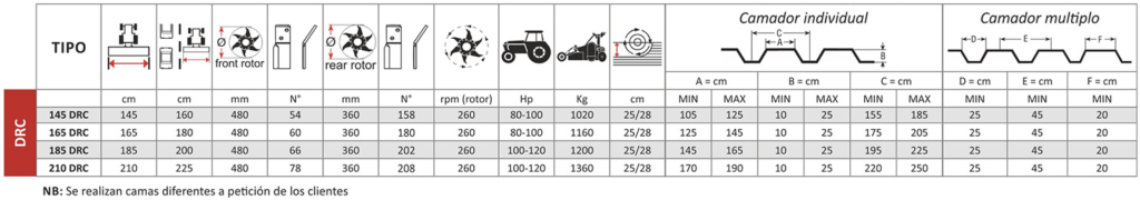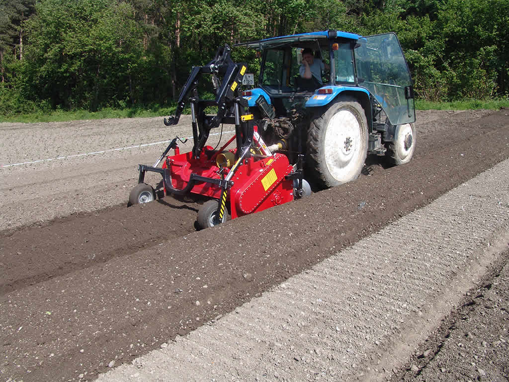 El rotor delantero trabaja en profundidad en el terreno por medio del sistema FRANGITER: 6 cuchillas especiales deshacen los terrones desde 10 hasta 25 cm de profundidad sin compactar la capa inferior como usualmente hacen las fresadoras tradicionales. El rotor trasero, equipado con herramientas en acero especial, gira en sentido contrario, osea al revés, y gracias a su velocidad de rotación deshace los terrones superficiales, proyecta los terrones más grandes contra el rotor delantero, nivela el suelo y compacta la parte superior.