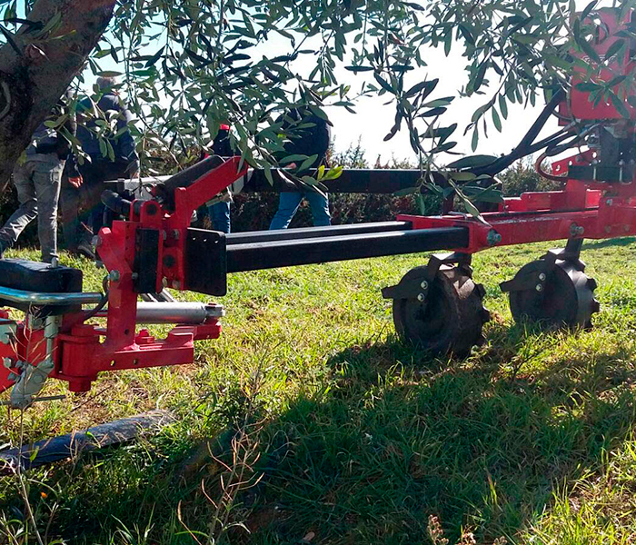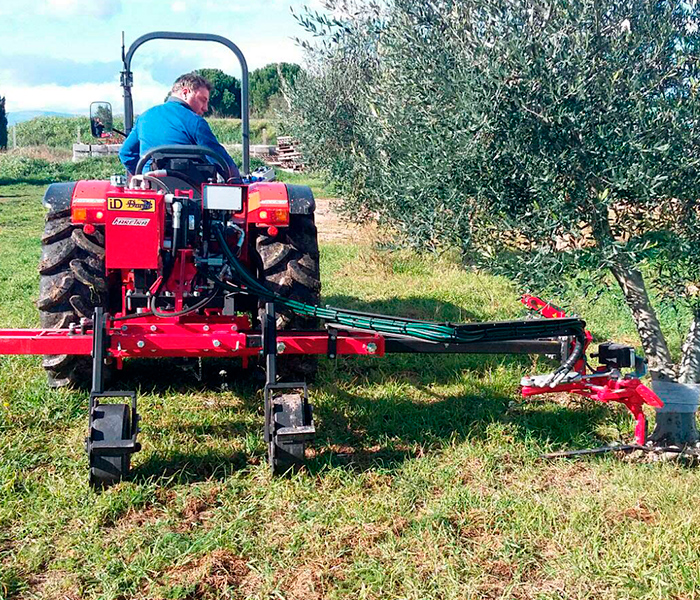 Chasis frontal monobrazo equipado con girosegadora retractil. Idóneo para trabajo en plantaciones con desniveles, caballones o terrazas. Se ajusta milimétricamente al terreno gracias a su sistema de flotación y la rueda de apoyo multiposicional.