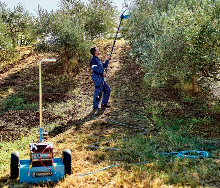 ELEKTRA es el cosechador eléctrico ideal para plantas bien podadas. Es rápido y tiene un cabezal recolector de movimiento contrapuesto con una excelente distribución del peso. La tapa y los dientes flexibles intercambiables de este cosechador de aceitunas eléctrico están fabricadas en tecnopolímero de alta resistencia. El cosechador eléctrico ELEKTRA se puede conectar a una alargadora fija o telescópica y tiene la autonomía de una jornada completa gracias a la conexión a una batería de plomo-ácido de 12 V (70/80 Ah) para coche.