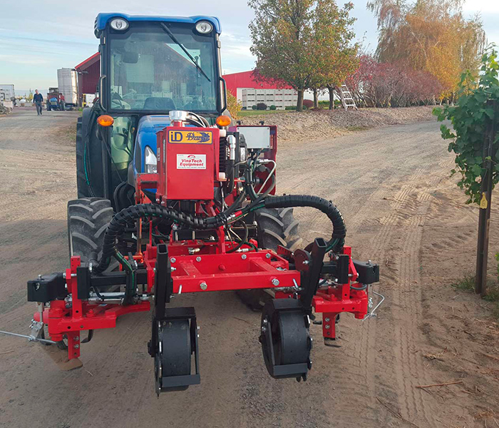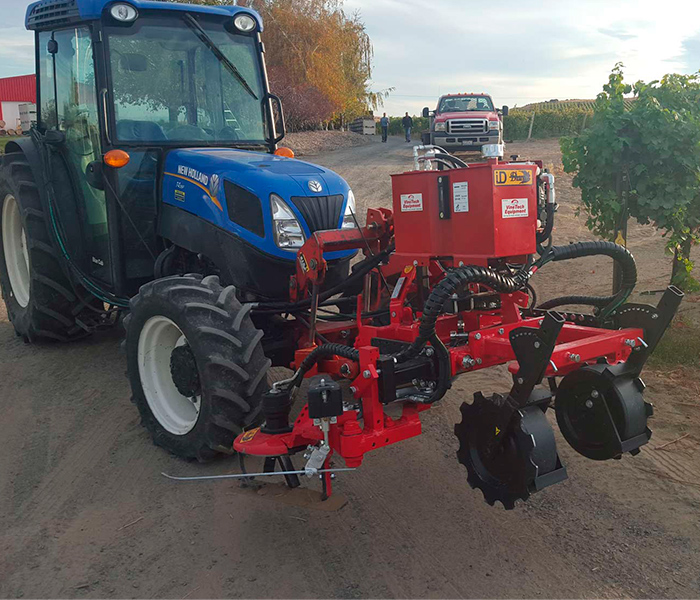 Chasis porta-intercepas frontales y extensibles adaptables a cualquier tractor sin necesidad de 3er punto delantero. Ideado para el laboreo y desherbaje entre plantas formadas en hileras.
