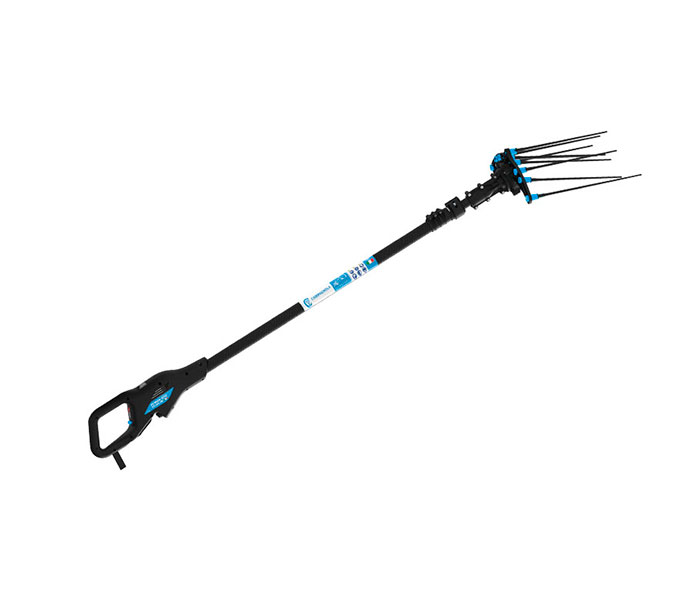 El cosechador eléctrico HERCULES 6 58, el más potente de la LINE 58, ofrece un rendimiento extraordinario y es adecuado para cosechar cuando los olivos son grandes y muy poblados. Los largos dientes intercambiables de carbono que efectúan un movimiento elíptico le permiten penetrar perfectamente entre las ramas de la planta. Al igual que los otros cosechadores LINE 58, se caracteriza por el motor sin escobillas Power 58 y el selector de velocidad, que le da al operario la capacidad de trabajar a 1080, 1150 o 1180 golpes por minuto. Además, cuenta con un economizador, que reduce el consumo de la batería cuando los dientes n tocan las ramas. Tiene la opción de doble alimentación: por medio de batería de iones de litio Li-ION 170 o LI-ION 700 insertada en la mochila, por medio de batería de plomo-ácido para coche.