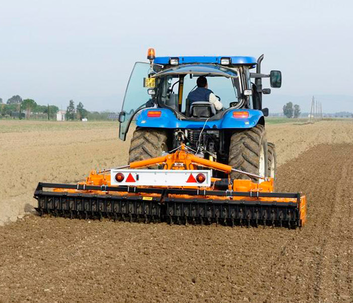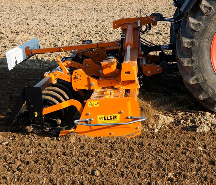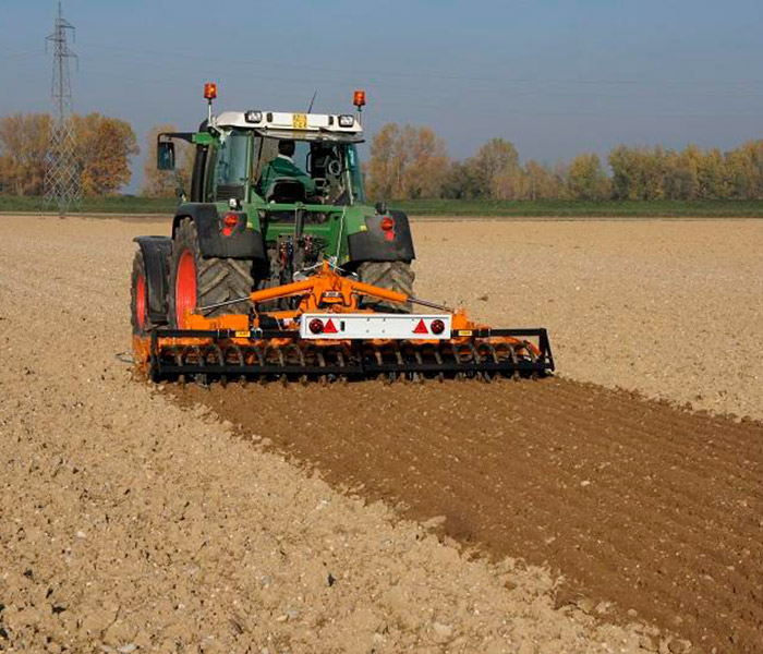 Grada rotativa plegable para tractores desde 80 hasta 150 CV. Apta para la preparación de la tierra para la siembra en agricultura profesional.