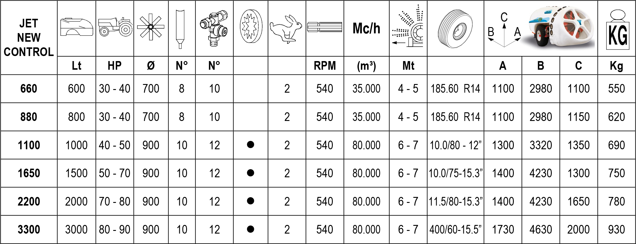 Atomizador con estanque de 600 a 3.000 l y flujo de aire de 35.000 a 80.000 m3/h