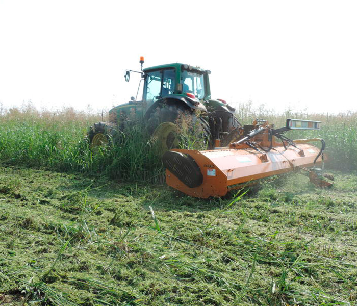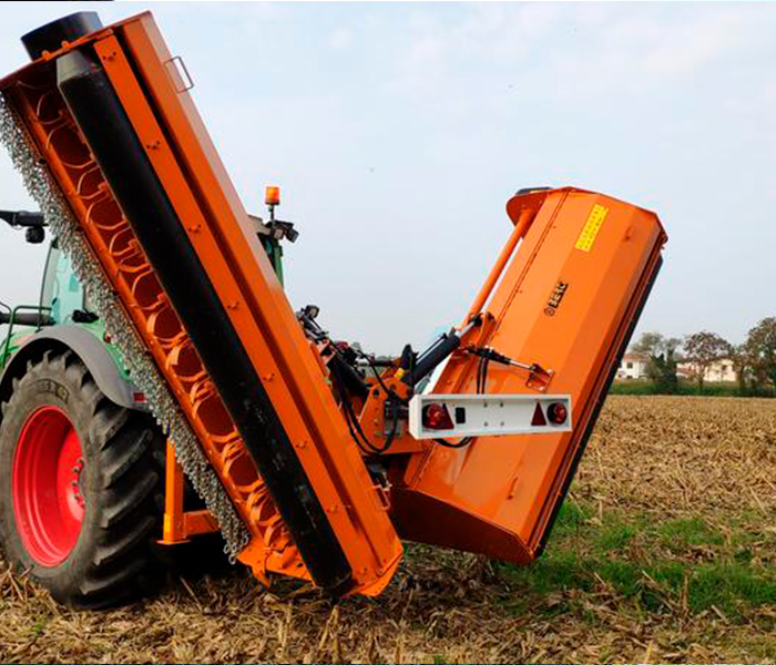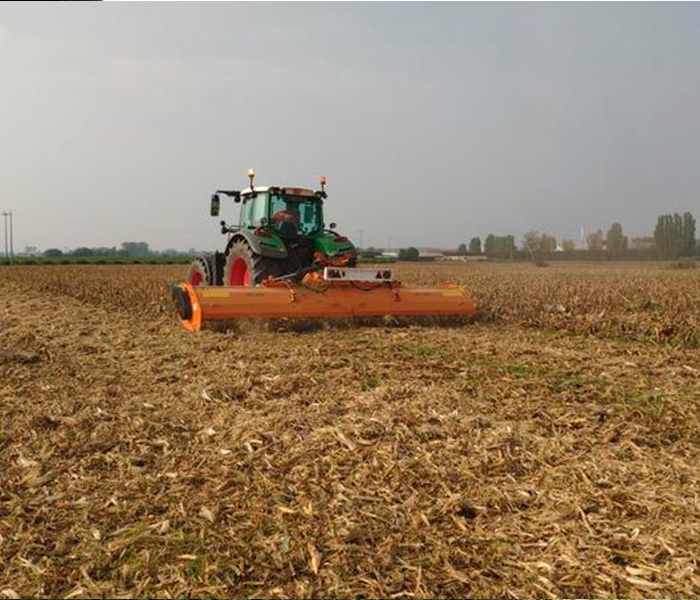 Trituradora Berti plegable de aplicar a tractores con potencia comprendida entre 90 y 300 CV. Está recomendada para tallos de maíz, sorgo, algodón, yerba, paja, hojas de patatas, hojas de remolacha, caña de azúcar y para el mantenimiento de terrenos no cultivados.