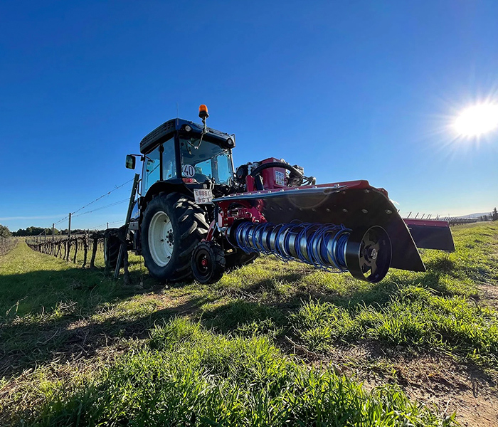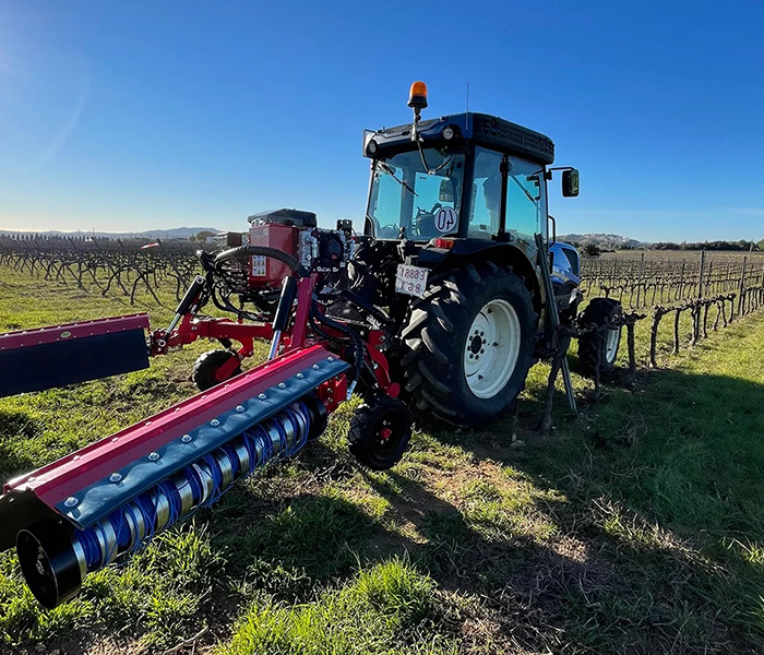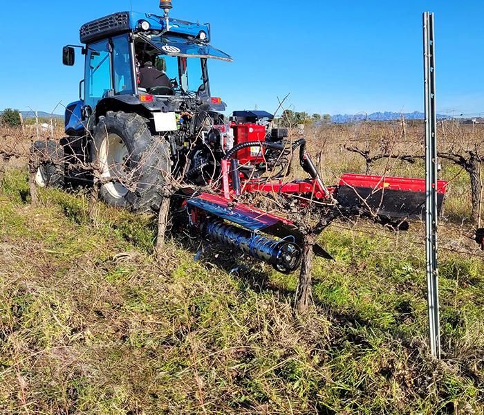 Desbrozadora de hilo interfilas. Ideal para el corte de malas hierbas entre hileras. Apta para cultivos de viñedos, frutales y olivar.