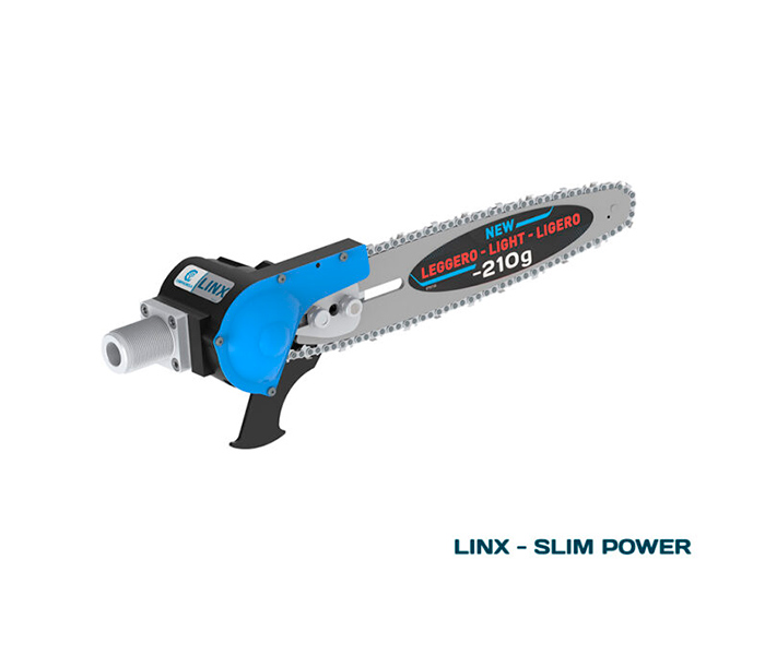 El podador neumático de cadena LINX está disponible con una espada de corte de 8 «y una cadena de 1/4», que lubrica con aire de escape y recupera el aceite del compresor. De hecho, como no hay depósito de aceite, la cadena se lubrica por medio del lubricador del compresor: el aceite, transportado por el aire comprimido, llega a la cadena por medio del escape del motor. Herramienta extremadamente versátil y eficiente, se caracteriza por la alta velocidad de la cadena. LASER es muy ligero (1,2 kg) y permite trabajar durante mucho tiempo sin cansar al operario.