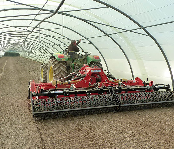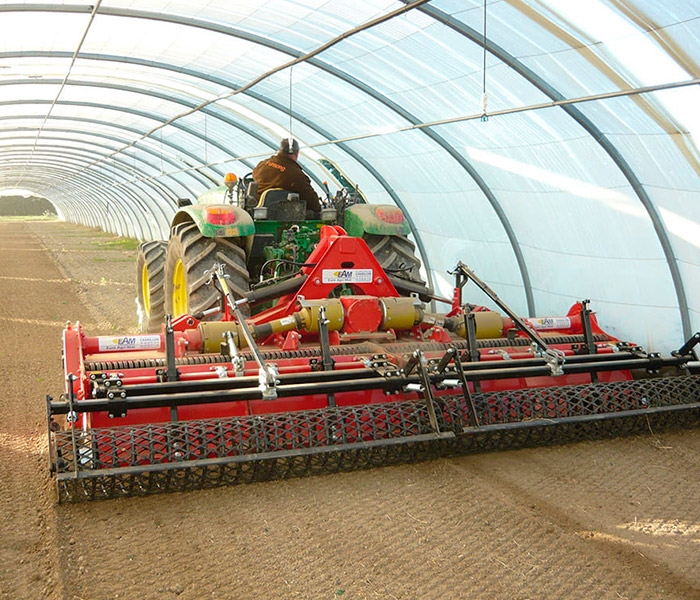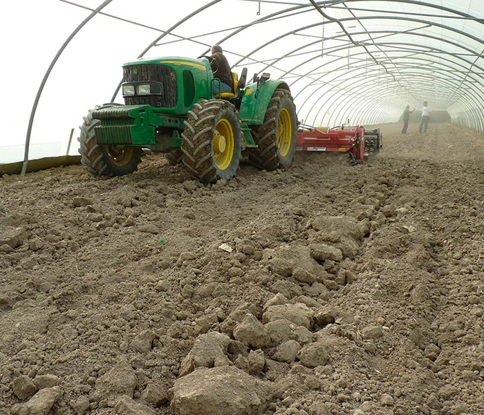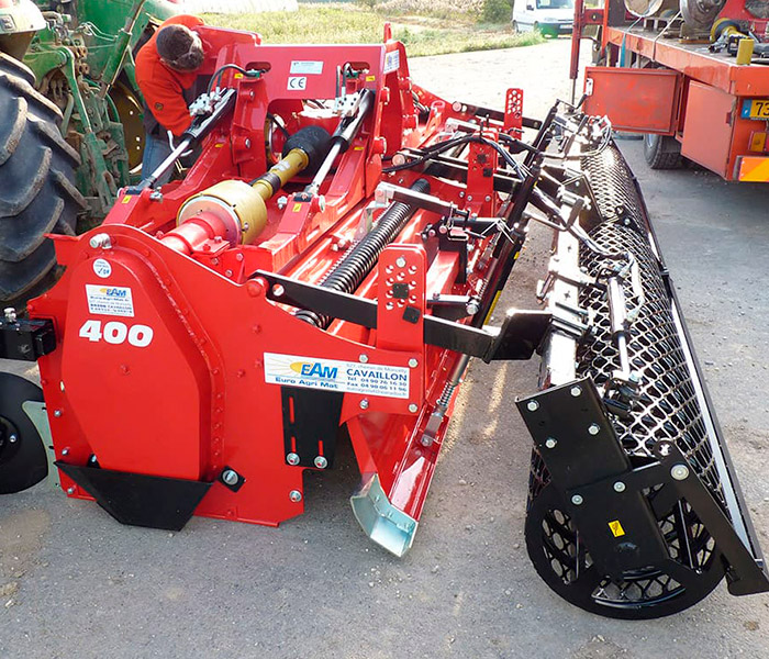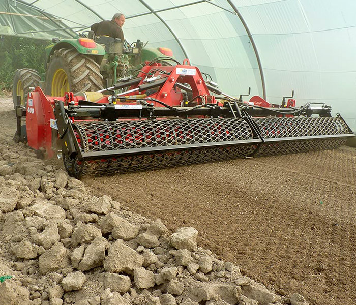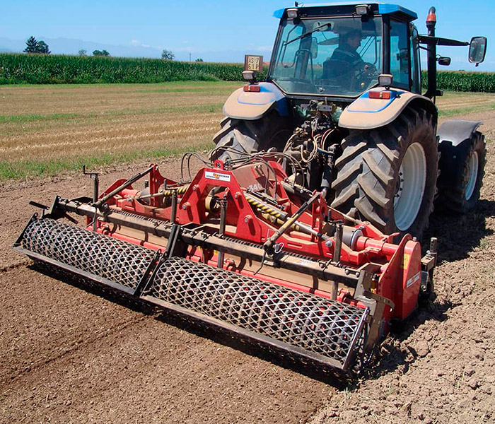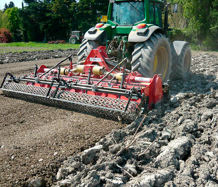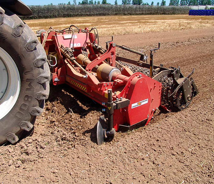 Estas caracteristicas permiten la utilización de tractores con potencias medias- altas con anchos de trabajo superiores al estandar. Proyectada para trabajar en un terreno con piedras de diámetro entre 20 y 25 cm.