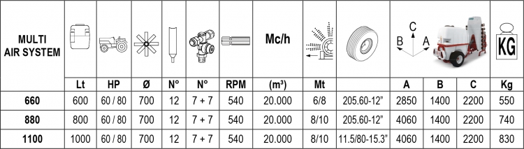 Atomizador con estanque de 600 a 1.000 l y flujo de aire de 20.000 m3/h