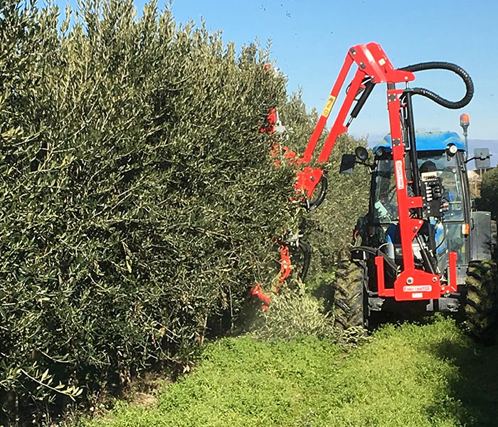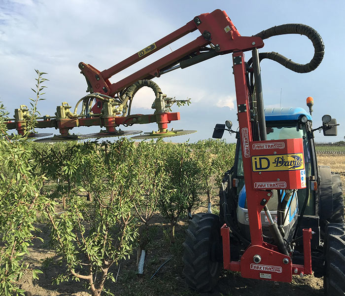 Prepodadora de discos con doble corte a derecha. Ideal para realizar simultáneamente cortes laterales y de copas en la misma hilera. Su diseño está especialmente indicado para trabajos en extensas plantaciones frutales, tanto tradicionales como de alta densidad.