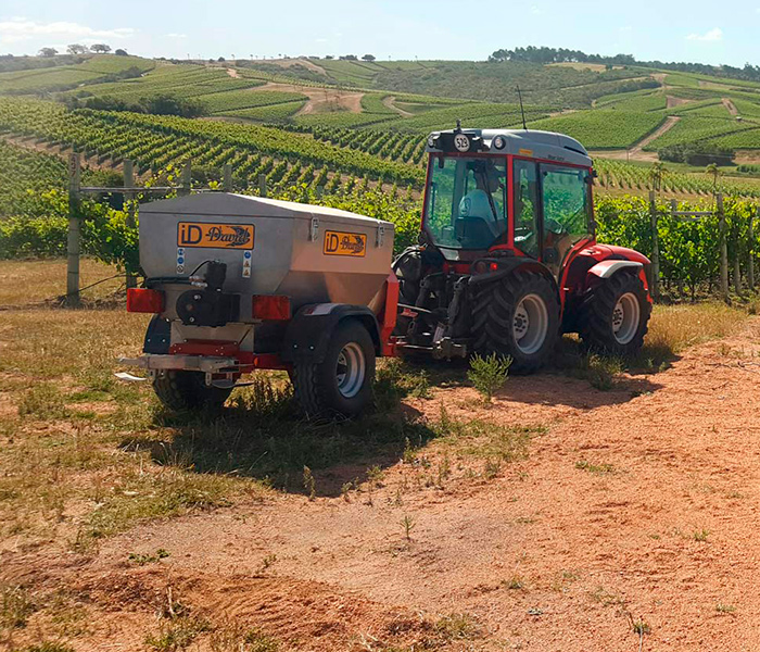 Azufradoras espolvoreadoras hidráulicas de alto rendimiento y avanzadas cualidades. Dosificación homogénea y precisa de todo tipo de productos en polvo o microgranulados gracias a su sistema de vaciado volumétrico mediante sinfines hidráulicos proporcionales. La tolva es inoxidable y presurizada.