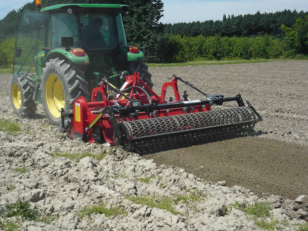 Construida con un ancho de trabajo desde 145 hasta 250 cm, potencia exigida desde 70 hasta 120 HP y profundidad de trabajo desde 15 hasta 25 cm. La enterradora RSC es una máquina profesional para trabajar en terrenos tenaces. Proyectada para trabajar en un terreno con piedras de diámetro entre 15 y 25 cm.