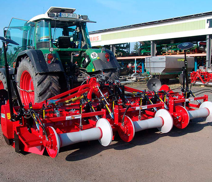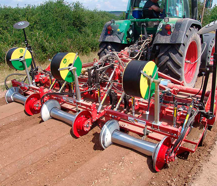 Construida con un ancho de trabajo desde 340 hasta 600 cm, potencia exigida desde 150 hasta 300 HP y profundidad de trabajo desde 15 hasta 30 cm. La enterradora RSE-PLUS.2 con chasis camador es una máquina profesional por contratistas y grandes empresas agricolas que quieren optimizar la preparación del semillero en una sola pasada. Por medio de la estructura de nuestras máquinas es posible juntar a la enterradora RSE-PLUS.2 con chasis camador muchos accesorios realizados a petición de nuestros clientes.