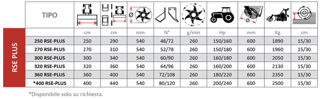 Construida con un ancho de trabajo desde 250 hasta 400 cm, potencia exigida desde 150 hasta 240 HP y profundidad de trabajo desde 15 hasta 30 cm. La enterradora RSE- PLUS es una máquina profesional para trabajar en condiciónes extremas con la posibilidad de obtener mayores profundidades de trabajo en cualquiera situación. Proyectada para trabajar en un terreno con piedras de diámetro entre 15 y 30 cm.