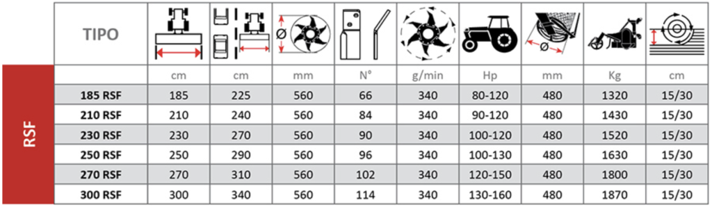 * Se puede equipar el modelo RSF 185 con un cambio monovelocidad con toma de fuerza 540 rev/min.