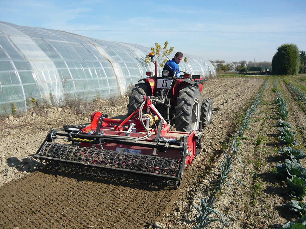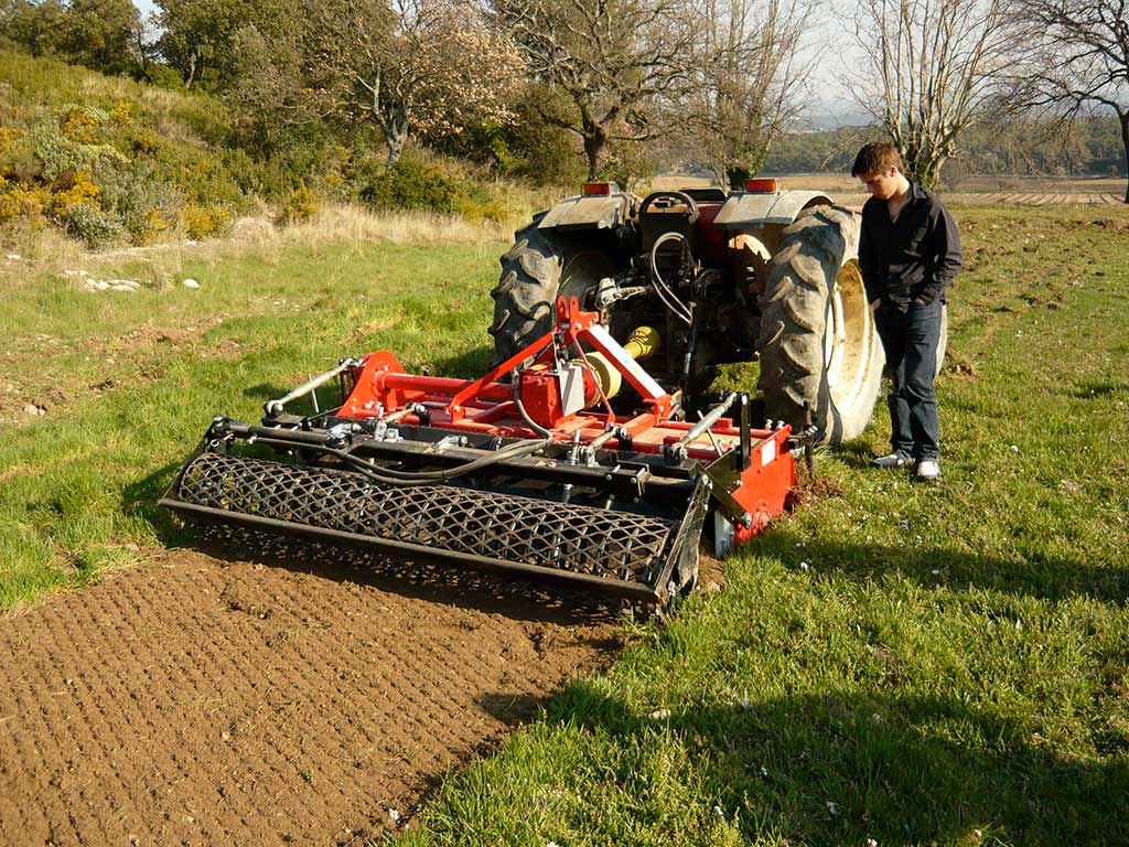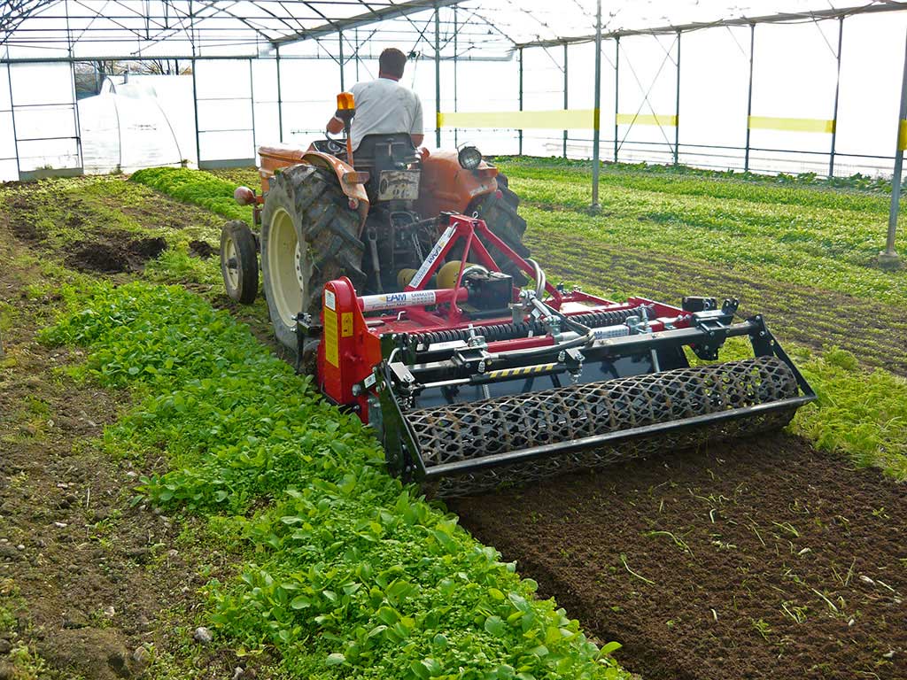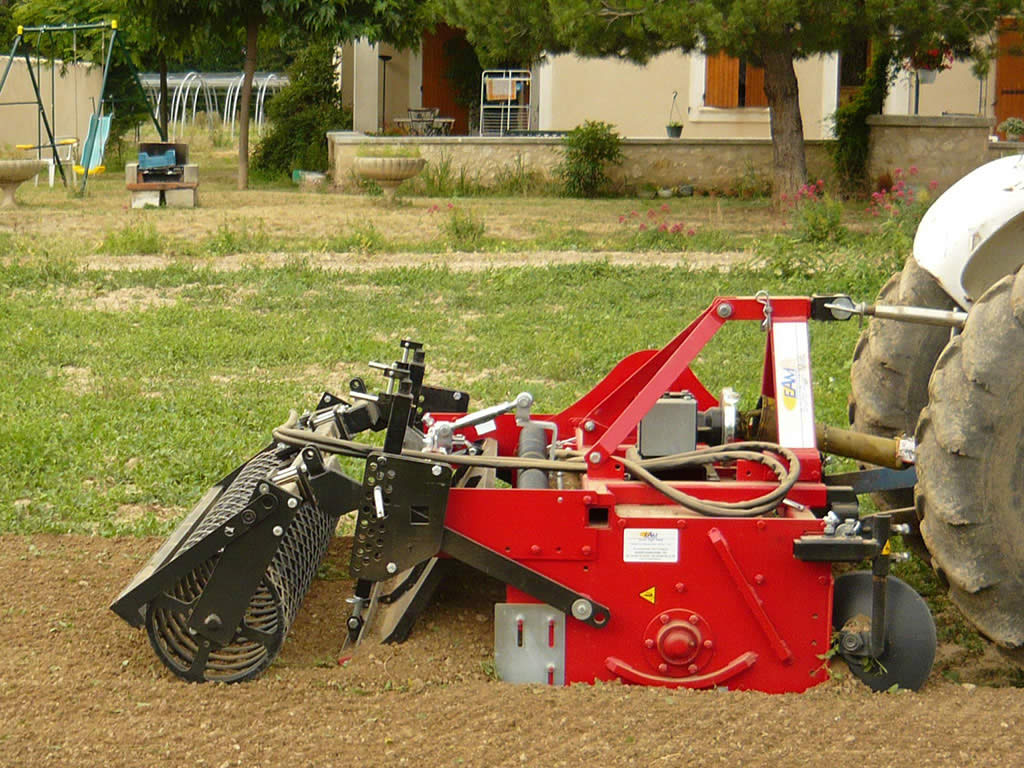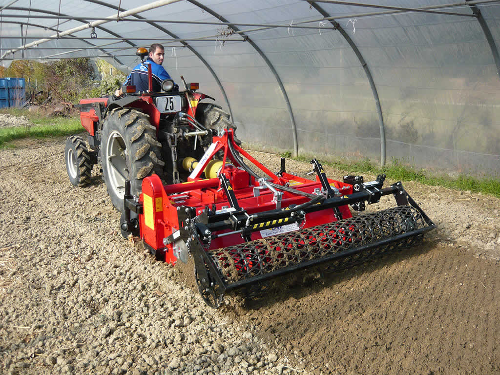 Construida con un ancho de trabajo desde 125 hasta 210 cm, potencia exigida desde 40 hasta 90 HP y profundidad de trabajo desde 15 hasta 25 cm. La enterradora RSG es utilizada en jardinería profesional y por pequeñas empresas horticulas que necessitan una máquina ligera y resistente.Proyectada para trabajar en un terreno con piedras de diámetro entre 10 y 20 cm.