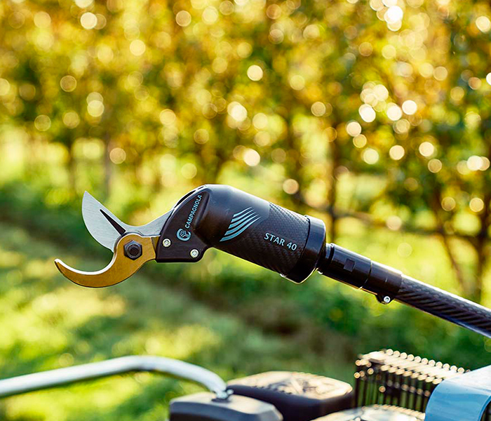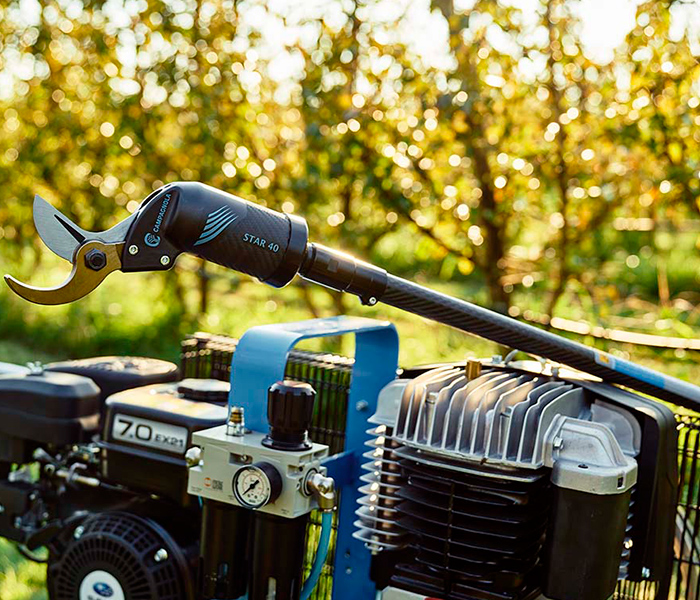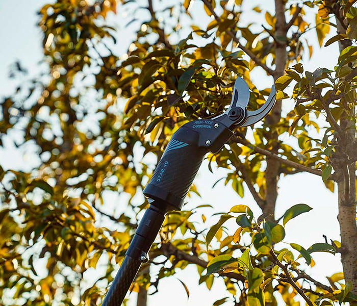STAR 40 es una tijera neumática tradicional completamente de tecnopolímero cargado de carbono con un pistón. Ha sido diseñada para realizar cortes de gran diámetro en frutales, olivares y cítricos. Se suministra con adaptador para la conexión a una alargadora. Sus robustas hojas de acero forjado de alta resistencia la convierten en una tijera extremadamente fiable, utilizable para cualquier tipo de poda. El cuerpo en tecnopolímero con fibra de carbono la hace muy ligera.