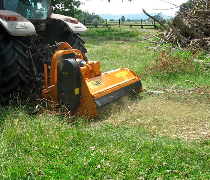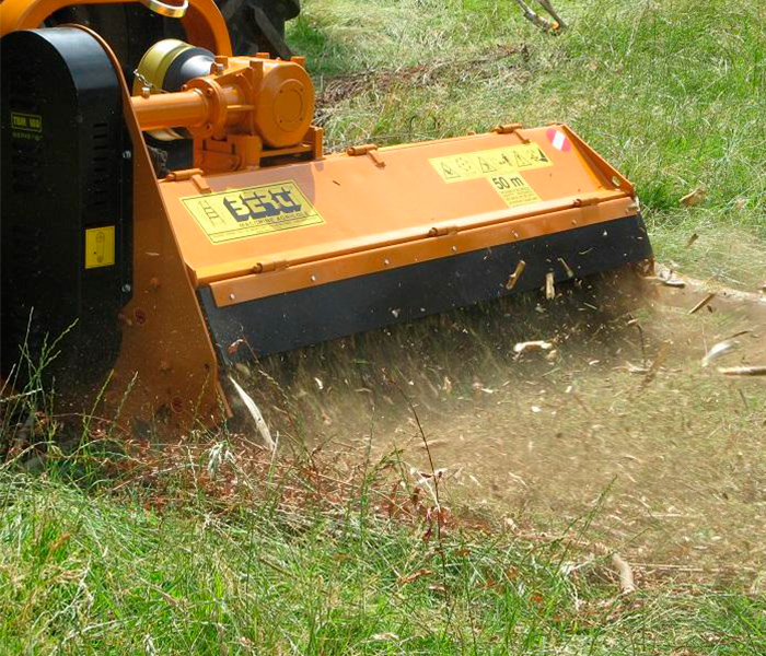 Trituradora de aplicar a tractores con potencia comprendida entre 80 y 150 CV. Está recomendada para triturar yerba, arbustos, zarzamoras, tallos de maíz y ramaje en general hasta a Ø 6-8 cm. Ideal en general para aplicaciones en mantenimiento del verde, set-aside, parques, áreas verdes y viñedos.