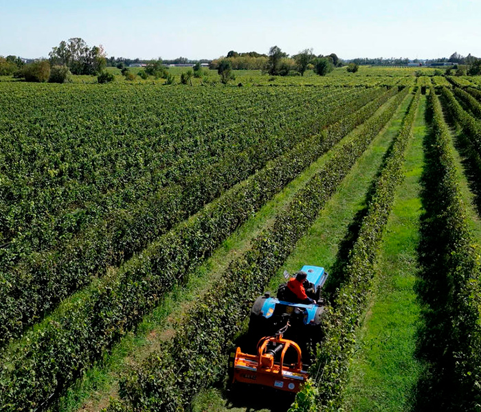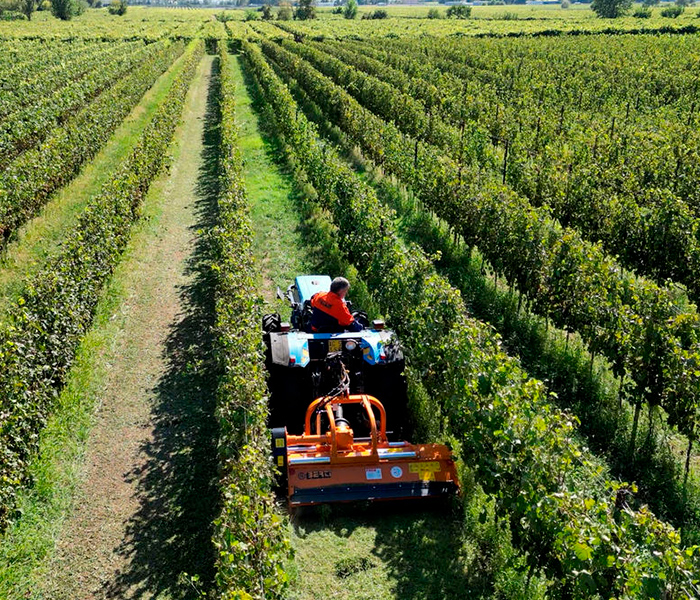 Desbrozadora para viñedos y frutales. Apta para triturar hierba y material leñoso de hasta 8 cm. de diámetro para tractores con una potencia entre 40 y 110 CV.