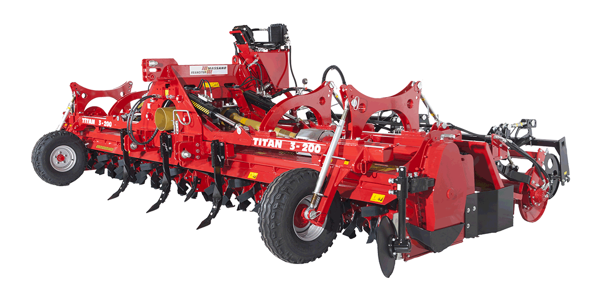Construida con un ancho de trabajo desde 340 hasta 580 cm, potencia exigida desde 160 hasta 360 HP y profundidad de trabajo desde 15 hasta 30 cm. La gama ROSTOSTONE TITAN RSE es constituida por enterradoras plegables por contratistas y grandes empresas agricolas. El proyecto particular del chasis permite reducir las medidas de transporte solamente a 2,8 metros. Por medio de la estructura de nuestras máquinas es posible juntar a la enterradora TITAN con chasis camador muchos accesorios realizados a petición de neustros clientes.