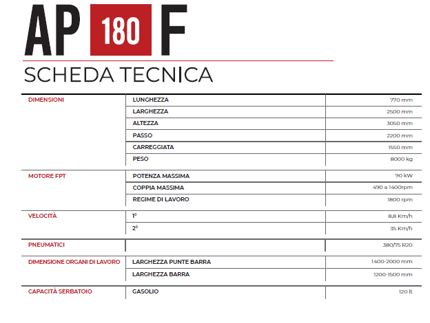 Ap180-3800: Permite descargar en la segunda fila con una densidad de plantación de 2 m.