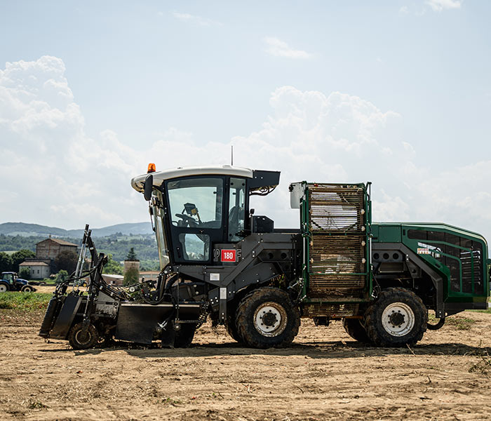 Los neumáticos, caracterizados por una baja presión que permite reducir el compactado y respetar de un modo mejor el producto.