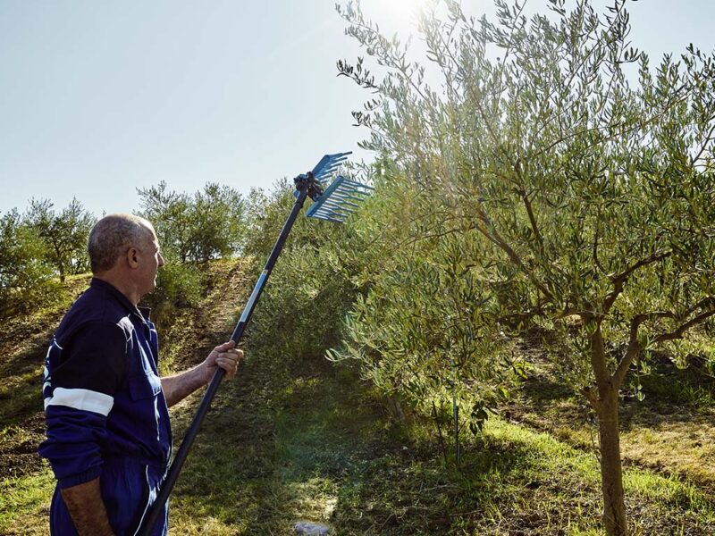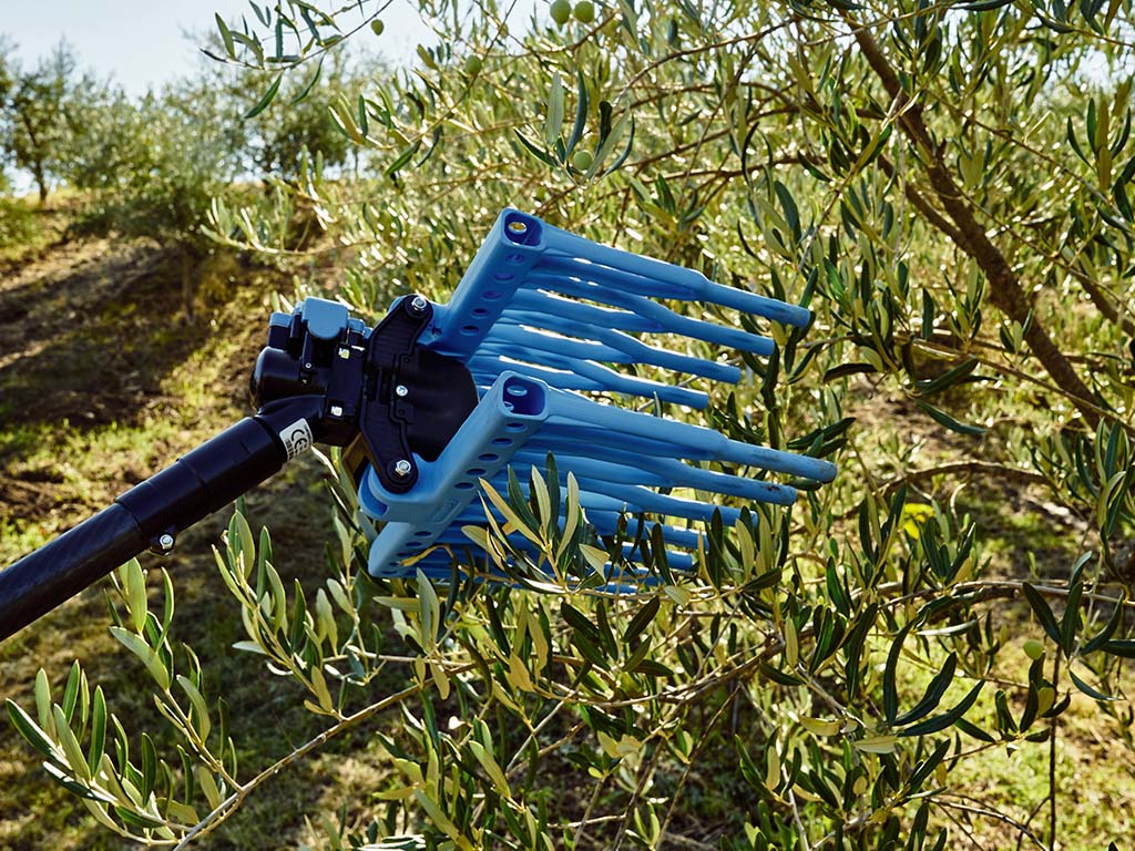 Los modelos de cosechadores neumáticos TUONO EVO y METAL TOP no provocan daños en la planta gracias a su perfecto deslizamiento entre las ramas. Los rastrillos de tecnopolímero cuentan con los famosos dientes en forma de diapasón, patentados por Campagnola, que permiten cosechar fácilmente cualquier tipo de aceituna, de cualquier tamaño y en cualquier grado de maduración.