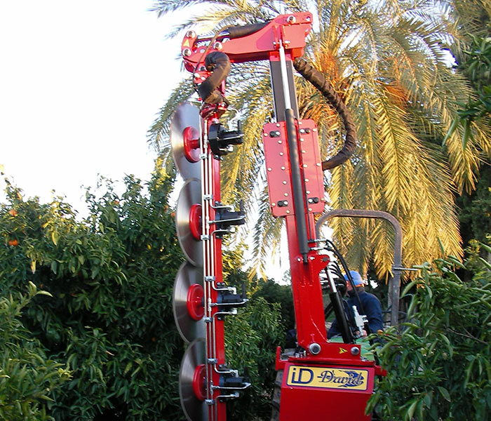 Prepodadora compacta de discos. Ideales para podas laterales y copas en plantaciones de frutales intensivos y setos con reducido espacio para el paso del tractor entre canopias.