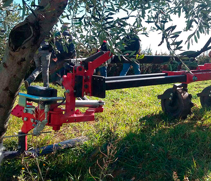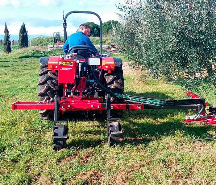 Chasis monobrazo equipado con intercepas y adaptable al frontal del tractor. Idóneo para trabajo en plantaciones con desniveles, caballones o terrazas. Se ajusta milimétricamente al terreno gracias a su sistema de flotación y la rueda de apoyo multiposicional.